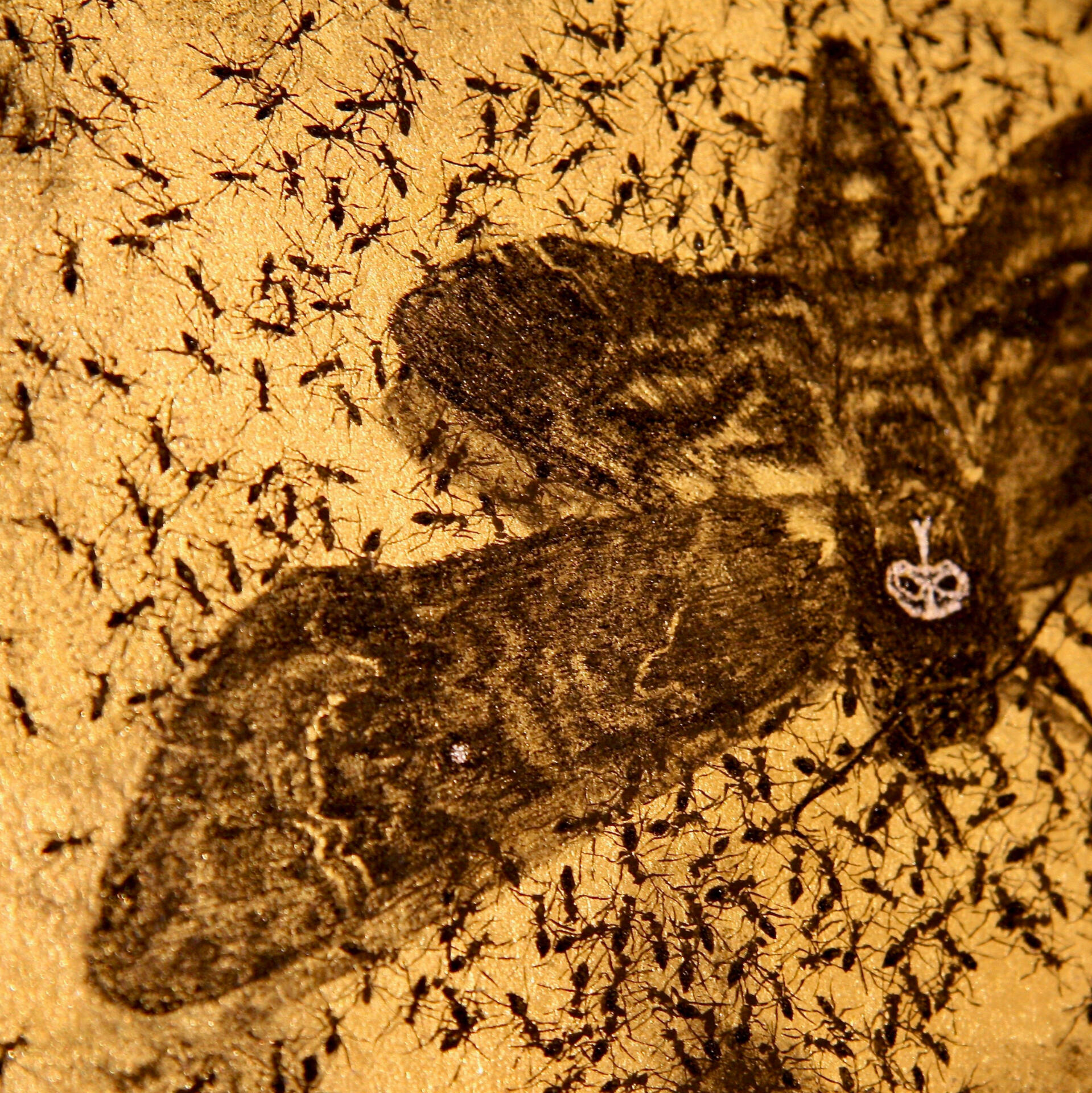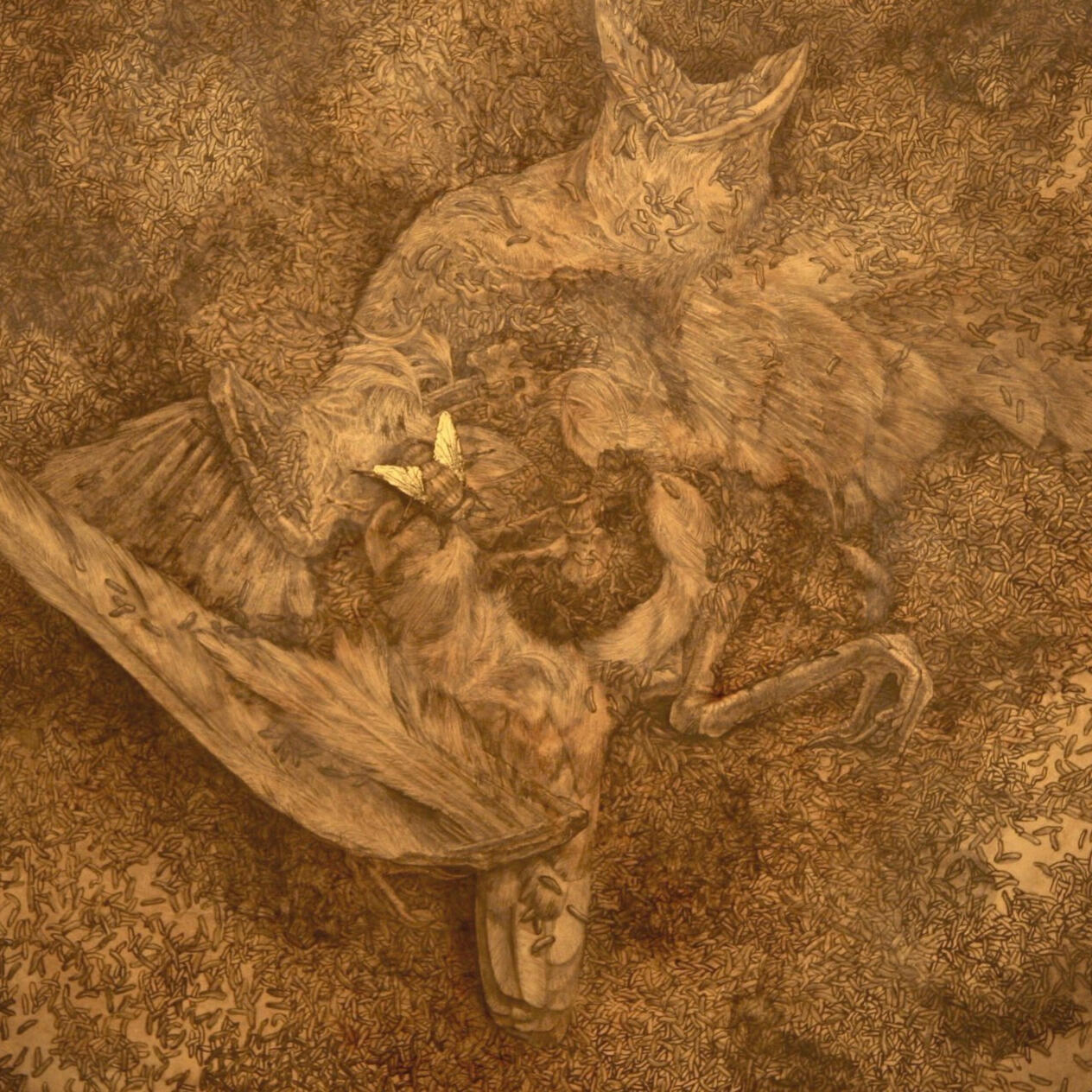 「嫌われものを描く日本画家」です。日本の伝統的な画材と金属箔を用いて、