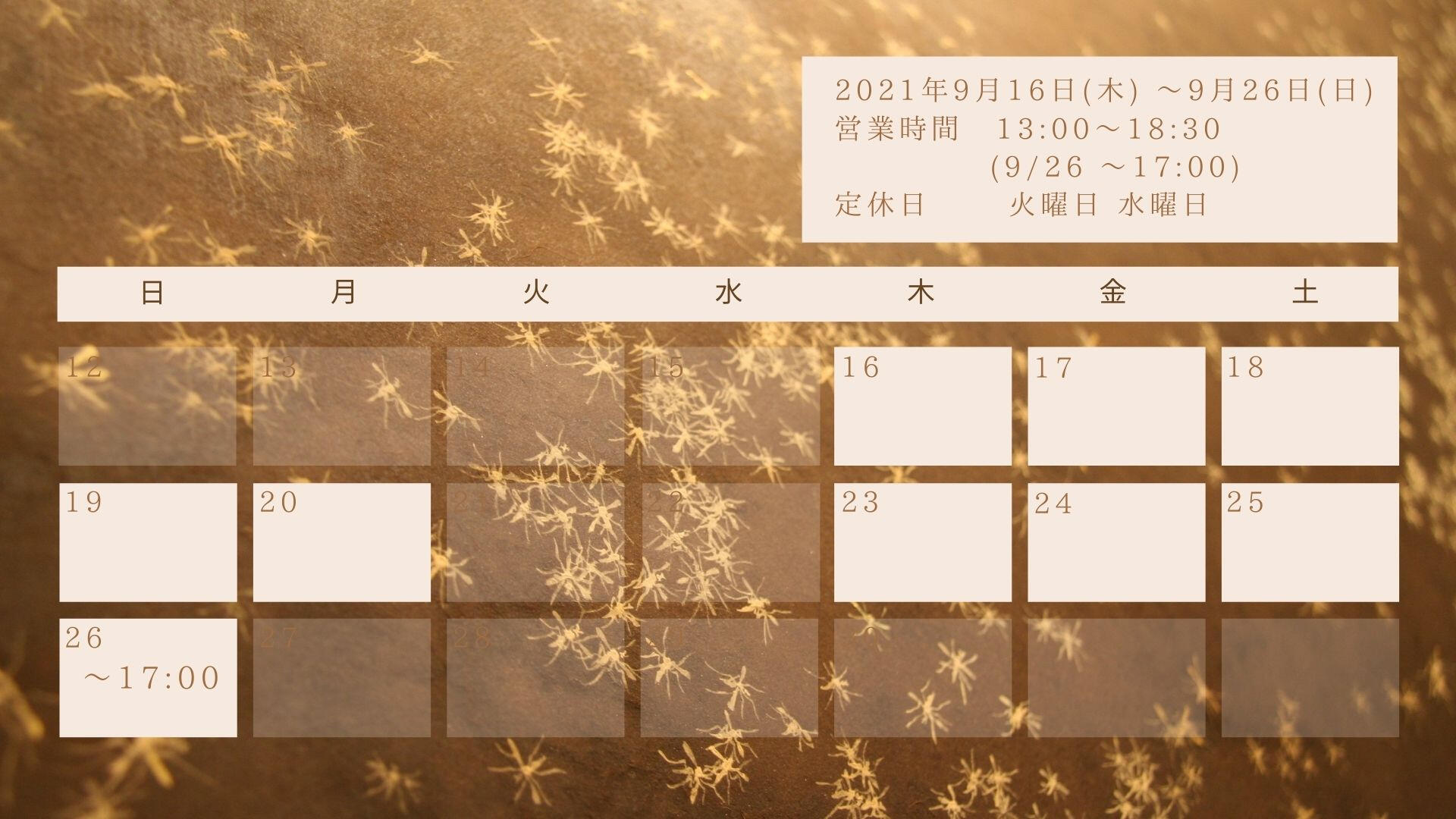 | 営業時間 | 13:00~18:30 (最終日~17:00) |